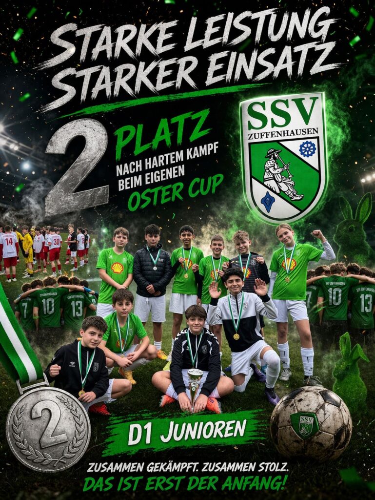 Beim 9. Volksbank Oster Cup 2026 für den Jahrgang 2013/14 zeigte die D1 des SSV Zuffenhausen vor heimischer Kulisse eine beeindruckende Leistung und sicherte sich am Ende einen verdienten zweiten Platz und die D2 einen hervorragenden Viertelfinaleinzug.