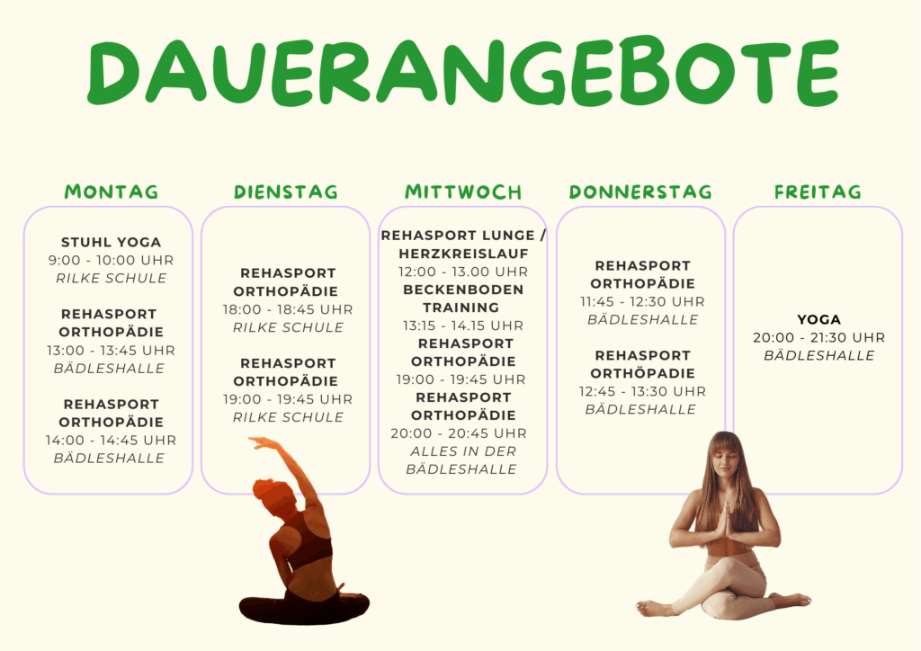 Die ergänzenden Sportangebote bieten eine vielfältige Möglichkeit, die Gesundheit nachhaltig zu fördern und gezielt auf verschiedene Bedürfnisse einzugehen. Mit diesen Angeboten schaffen wir einen umfassenden Ansatz, um die Lebensqualität langfristig zu verbessern.