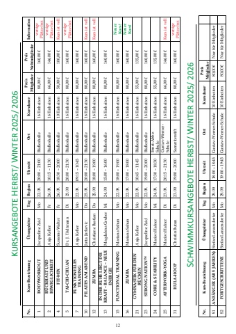 KURSANGEBOTE HERBST/ WINTER 2025/ 2026 1U%u0011%u0003 .XUV%u0010%H]HLFKQXQJ%u0003 hEXQJVOHLWHU%u0003 7DJ%u0003 %HJLQQ%u0003 8KU]HLW%u0003 2UW%u0003 .XUVGDXHU%u0003 3UHLV%u0003 3UHLV%u0003 ,QIRUPDWLRQ%u0003 0LWJOLHGHU%u0003 1LFKWPLWJOLHGHU%u00031 BODYWORKOUT Jacqueline Zaid Mo 22.09. 20:00 %u2013 21:00 B%u00e4dleshalle 16 Einheiten 80,00 %u20ac 160,00 %u20ac wenige Pl%u00e4tze frei2 R%u00dcCKHALT UND BEWEGLICHKEIT Anja Keller Fr 26.09. 10:15 %u2013 11:30 B%u00e4dleshalle 16 Einheiten 66,00 %u20ac 146,00 %u20ac wenige Pl%u00e4tze frei4 FIT-MIX Susanne Walter Fr 26.09. 18:30 %u2013 20:00 B%u00e4dleshalle 10 Einheiten 50,00 %u20ac 100,00 %u20ac Kurs ist voll5 TAI-CHI-CHUAN Dr. J. T%u00f6dtmann Di 23.09. 20:00 %u2013 21:30 B%u00e4dleshalle 16 Einheiten 80,00 %u20ac 160,00 %u20ac wenige Pl%u00e4tze frei7 FUNKTIONELLES TRAINING Anja Keller Mo 22.09. 09:15 %u2013 10:45 B%u00e4dleshalle 16 Einheiten 80,00 %u20ac 160,00 %u20ac 10 PILATES AM ABEND Jutta Jurkovic Do 25.09. 20:00 %u2013 21:30 B%u00e4dleshalle 16 Einheiten 80,00 %u20ac 160,00 %u20ac Kurs ist voll12 ZUMBA Christiane Bastian Do 25.09. 18:00 %u2013 19:00 B%u00e4dleshalle 16 Einheiten 80,00 %u20ac 160,00 %u20ac Kurs ist voll13 IN DER RUHE LIEGT DIE KRAFT %u2013 BALANCE %u2013 NEUE ENERGIE Magdalena Gruber Mi 24.09. 15:00 %u2013 16:00 B%u00e4dleshalle 16 Einheiten 80,00 %u20ac 160,00 %u20ac 15 FUNCTIONAL TRAINING Mariana Sahun Mo 22.09. 18:00 %u2013 19:00 B%u00e4dleshalle 16 Einheiten 80,00 %u20ac 160,00 %u20ac Neuer Kurs!16 ZUMBA Mariana Sahun Mo 22.09. 17:00 %u2013 18:00 B%u00e4dleshalle 16 Einheiten 80,00 %u20ac 160,00 %u20ac Neuer Kurs! 21 GYMNASTIK F%u00dcR DEN R%u00dcCKEN Anja Keller Mo 22.09. 10:45 %u2013 11:45 B%u00e4dleshalle 16 Einheiten 55,00 %u20ac 135,00 %u20ac 23 STRONG NATIONTM Jacqueline Zaid Mo 22.09. 19:00 %u2013 20:00 B%u00e4dleshalle 16 Einheiten 80,00 %u20ac 160,00 %u20ac 24 CORE & STABILITY Marion Hafner Mi 24.09. 17:30 %u2013 18:30 Ernst-Abbe- Schule 16 Einheiten 55,00 %u20ac 135,00 %u20ac 25 AFTERWORK-YOGA Marion Hafner Di 23.09. 20:15 %u2013 21:30 Gustav-Werner- Schule 16 Einheiten 66,00 %u20ac 146,00 %u20ac Kurs ist voll31 HULA-HOOP Christin Butun Di 23.09. 19:00 %u2013 20:00 Samariterstift 16 Einheiten 80,00 %u20ac 160,00 %u20ac wenige Pl%u00e4tze frei SCHWIMMKURSANGEBOTE HERBST/ WINTER 2025/ 2026 1U%u0011%u0003 .XUV%u0010%H]HLFKQXQJ%u0003 hEXQJVOHLWHU%u0003 7DJ%u0003 %HJLQQ%u0003 8KU]HLW%u0003 2UW%u0003 .XUVGDXHU%u0003 3UHLV%u0003 %u0003 0LWJOLHGHU%u0003 %u0003S1 ANF%u00c4NGER (AB 5 JAHREN) Stefan Lanzendorfer Mo 29.09. 18:00 %u2013 18:45 Gustav-Werner-Schule 10 Einheiten 80,00 %u20ac Nur f%u00fcr Mitglieder S2 FORTGESCHRITTENE Stefan Lanzendorfer Mo 29.09. 19:00 %u2013 19:45 Gustav-Werner-Schule 10 Einheiten 80,00 %u20ac Nur f%u00fcr Mitglieder 12