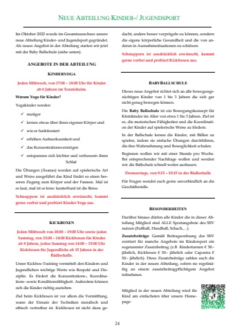 Im Oktober 2022 wurde im Gesamtausschuss unsere neue Abteilung Kinder- und Jugendsport gegr%u00fcndet. Als neues Angebot in der Abteilung starten wir jetzt mit der Baby Ballschule (siehe unten). ANGEBOTE IN DER ABTEILUNG KINDERYOGA -HGHQ%u00030LWWZRFK%u000f%u0003YRQ%u0003%u0014%u001affl%u0013%u0013%u0003%u00b2%u0003%u0014flffl%u0013%u0013%u00038KU%u0003I%u0081U%u0003.LQGHU%u0003DE%u0003%u0019%u0003-DKUHQ%u0003LP%u00037HQQLVKHLP%u0011%u0003:DUXP%u0003